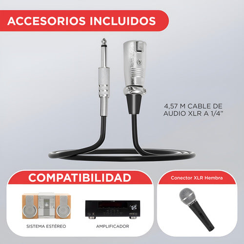 CABLE INCLUIDO: Incluye un cable profesional de 4.5 m XLR a 1/4”. Perfecto para uso en habitaciones, estudios profesionales y actuaciones vocales en vivo en todo el mundo.